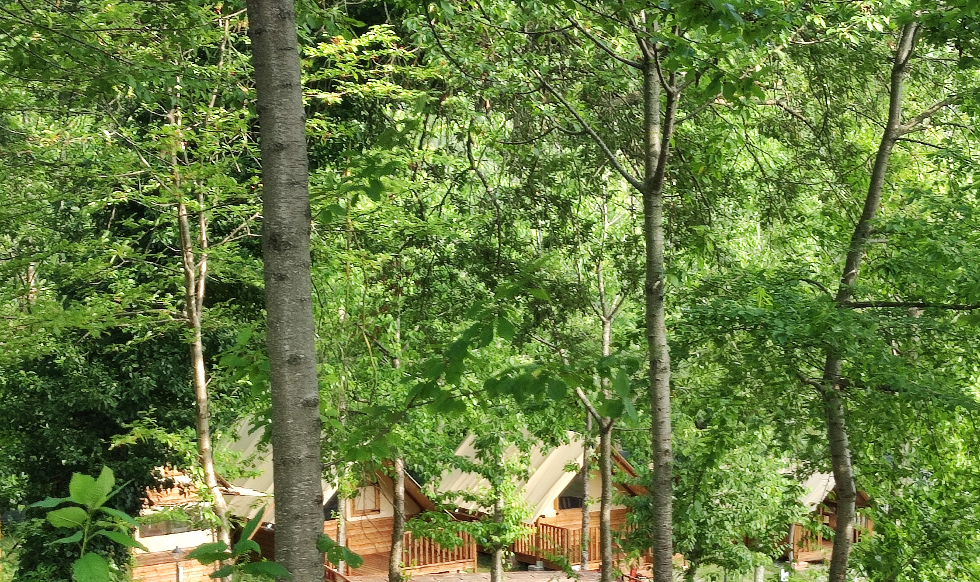 Particolare : Vista del Glamping - Tende Lodges dal terrazzo panoramico del percorso atletico
